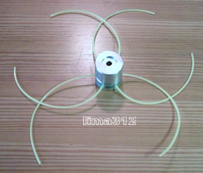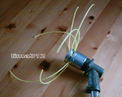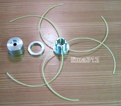 3 tlg Aluminium-Fadenkopf, mit Linksgewinde, Ø ca. 50 mm, H ca. 52 mm 3 fünfkant Nylon-Schneidfäden 3 mm a ca. 45 cm (Fäden werden in der Mitte gebogen montiert, ergibt 6 Schneidfäden)